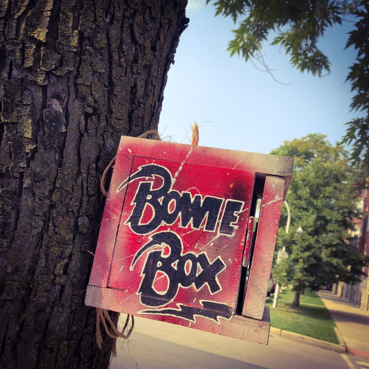 Walking north on Humboldt Boulevard in Logan Square, you’re immediately embraced by the vintage charm of the early 20th century homes and the green space of a grand old boulevard of a bygone era. And then you can stumble upon something like this. This is a book renting box that have been popping up in certain neighborhoods in Chicago lately. I was very fond of this particular one. RIP David Bowie.