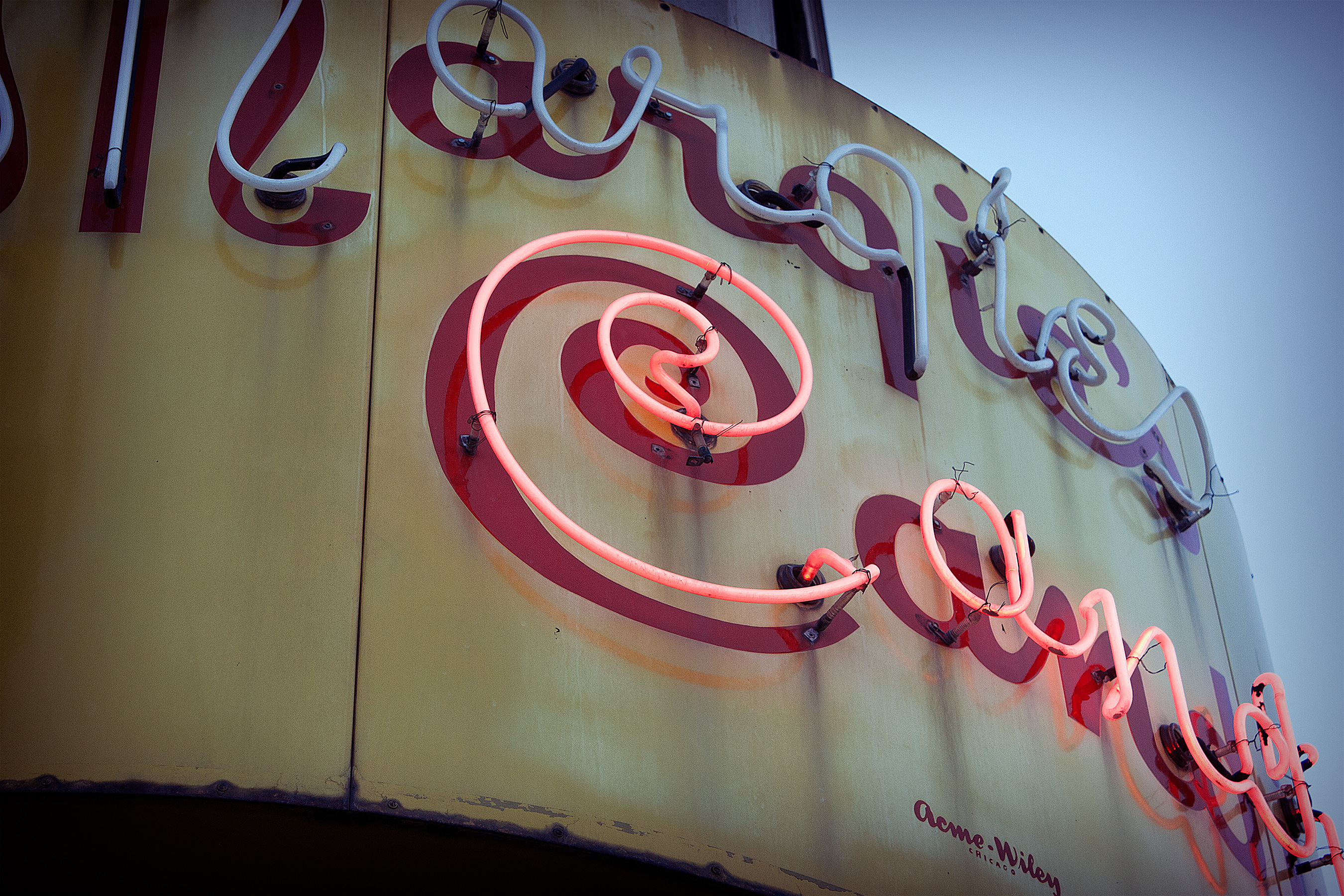 I see this on most of the older stations near downtown Chicago. This example is the subway entrance at the Division Street Blue Line. Such a timeless thing. Like a good Bogart film.